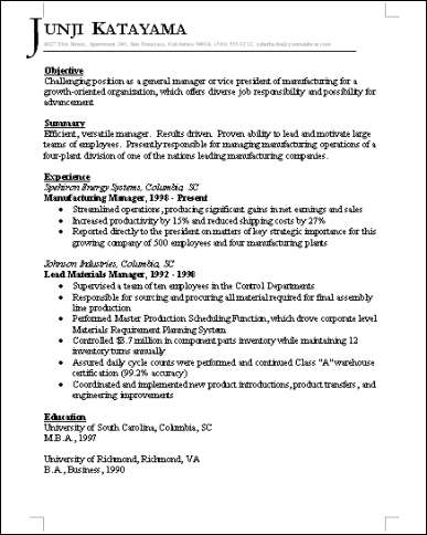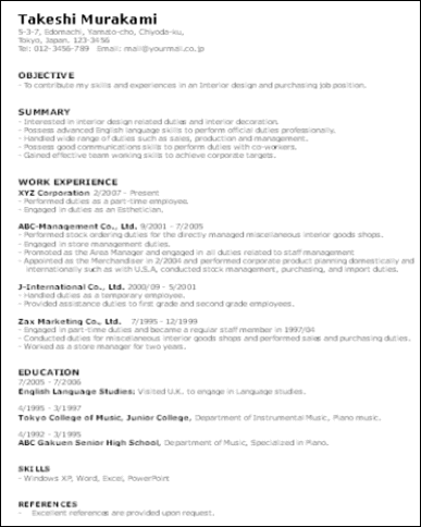 英文履歴書、英語の職務経歴書、カバーレターなどの見本を下記どおりにご提供をいたします。